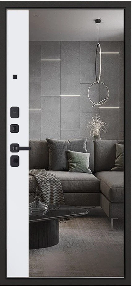 Надежная входная Дверь Scandi с зеркалом премиум класса по цене 46 103 руб. Большая толщина стали защитит от проникновения в ваш дом, квартиру или коттедж. Используется очень качественная фурнитура: замки, цилиндры, ручки, защелки. Покрытие и отделка двери изготовлено под внимательным контролем производителя. Дверь имеет долгий срок службы и гарантию.