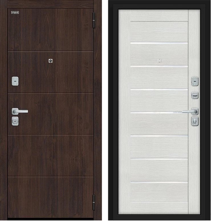 Надежная входная Дверь Браво Прайм/BChrome Almon/Bianco Melinga премиум класса по цене 40 803 руб. Большая толщина стали защитит от проникновения в ваш дом, квартиру или коттедж. Используется очень качественная фурнитура: замки, цилиндры, ручки, защелки. Покрытие и отделка двери изготовлено под внимательным контролем производителя. Дверь имеет долгий срок службы и гарантию.